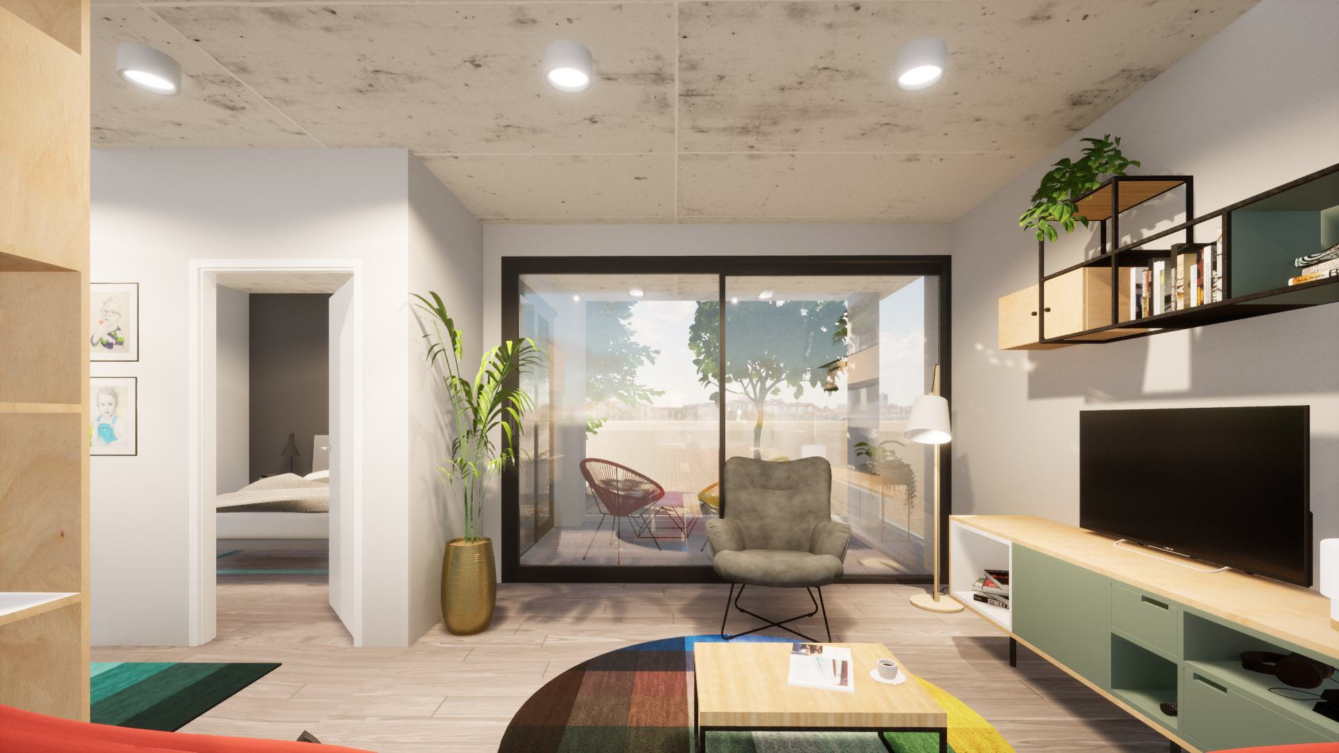 Apartament składa się z przestronnego salonu z dużymi oknami, które zapewniają wiele naturalnego światła i piękny widok na miasto. Salon połączony jest z kuchnią, która po pełnym wyposażeniu w nowoczesne urządzenia i meble, umożliwi łatwe przygotowywanie posiłków dla całej rodziny. Apartament posiada jedną sypialnię, która jest cicha i przytulna, zapewniając idealne miejsce do odpoczynku i relaksu. Łazienka jest przestronna i ustawna, można ją bardzo ciekawie zaaranżować.