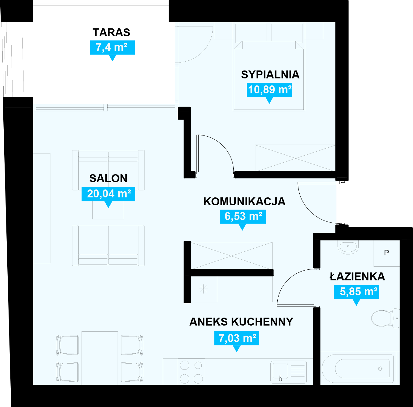 Apartament składa się z przestronnego salonu z dużymi oknami, które zapewniają wiele naturalnego światła i piękny widok na miasto. Salon połączony jest z kuchnią, która po pełnym wyposażeniu w nowoczesne urządzenia i meble, umożliwi łatwe przygotowywanie posiłków dla całej rodziny. Apartament posiada jedną sypialnię, która jest cicha i przytulna, zapewniając idealne miejsce do odpoczynku i relaksu. Łazienka jest przestronna i ustawna, można ją bardzo ciekawie zaaranżować.